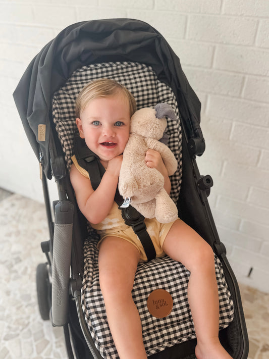 Universal Linen Pram Liner - Black Gingham